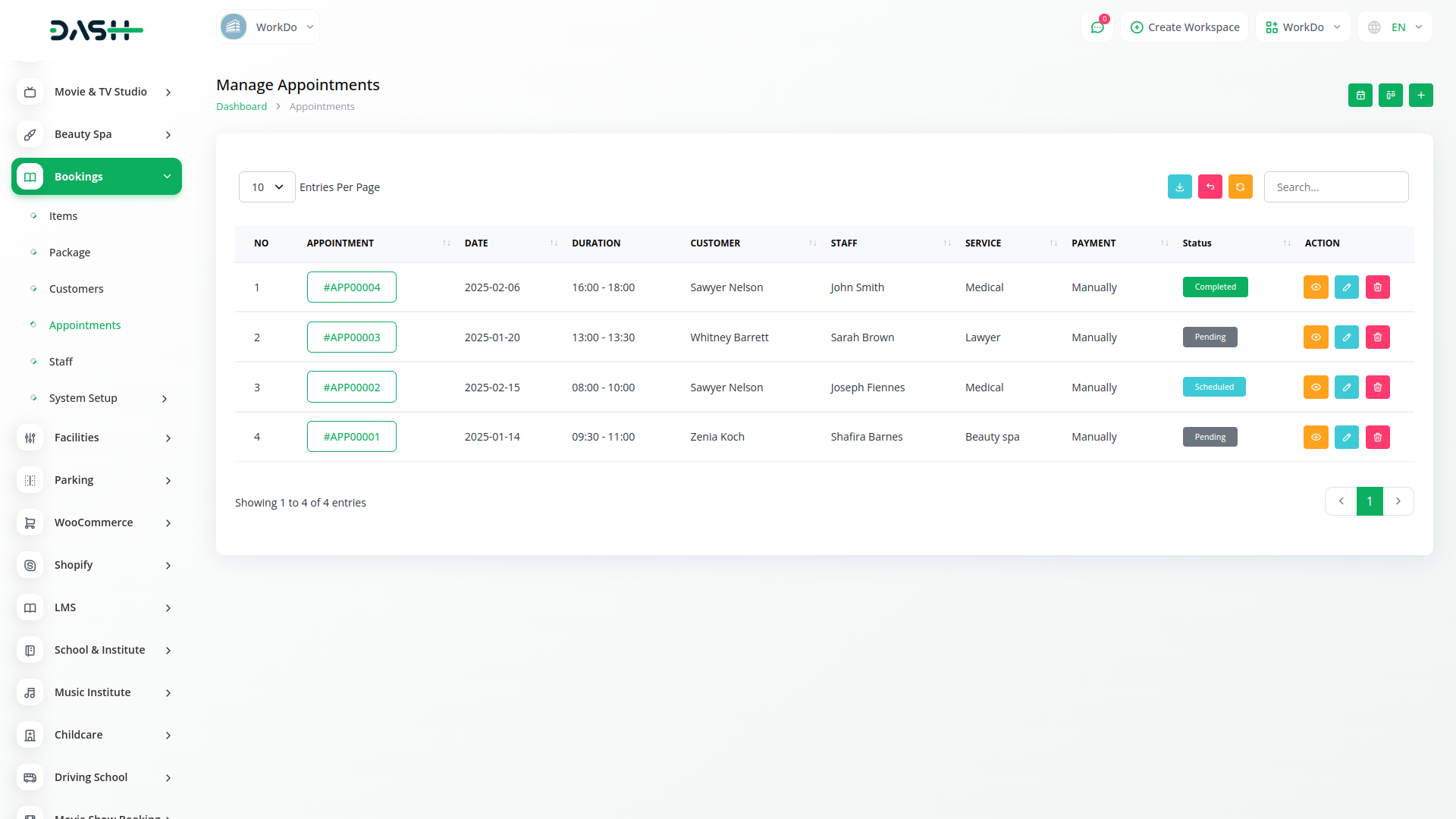 Obtenha informações valiosas sobre as tendências de reservas e o desempenho do negócio com o Dash Saas Bookings Module / s analytics. Rastreie métricas importantes como números de compromissos, horários de pico de reservas e preferências do cliente. Use esses dados para tomar melhores decisões sobre pessoal, marketing e serviços. Nossos relatórios e painéis simples fornecem uma visão clara de como seu sistema de reservas está funcionando, ajudando a melhorar a eficiência e a lucratividade. Além disso, você pode gerenciar reservas tanto do backend quanto do frontend, dando controle completo e flexibilidade sobre seu processo de agendamento.