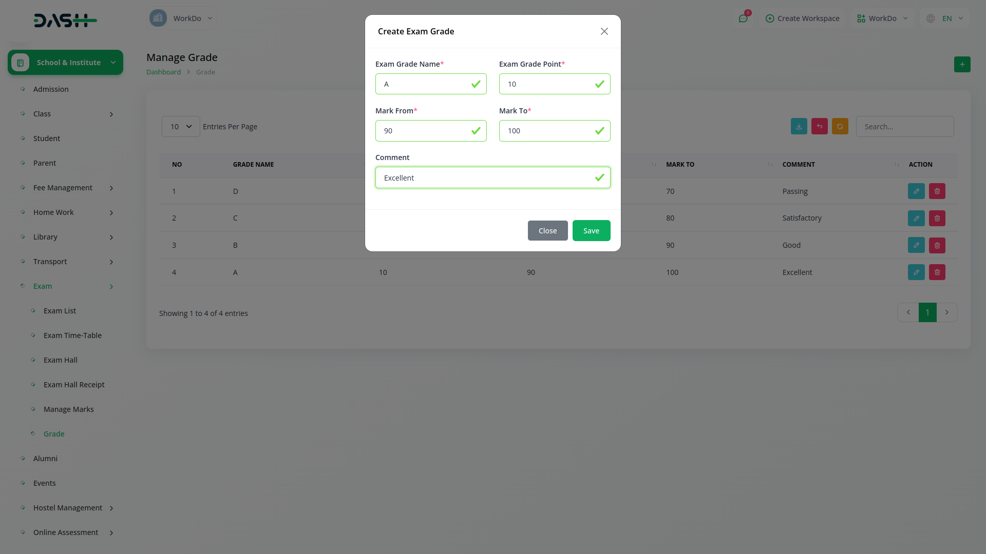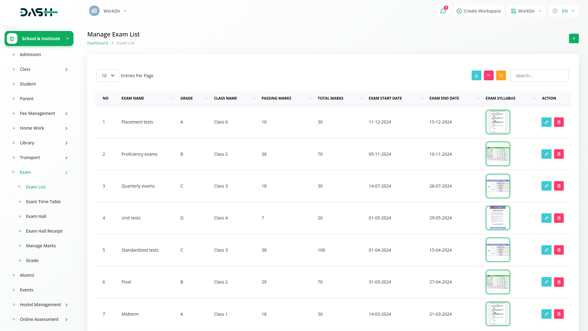 Managing examinations efficiently is a critical aspect of academic administration, and Dash SaaS`s Exam Module offers a comprehensive solution to streamline this complex process. With its user-friendly interface and robust features, educational institutions can effortlessly handle exam scheduling, hall allocation, and mark management. By centralizing exam-related tasks within a single platform, administrators can save time and resources while ensuring the smooth execution of examinations.
