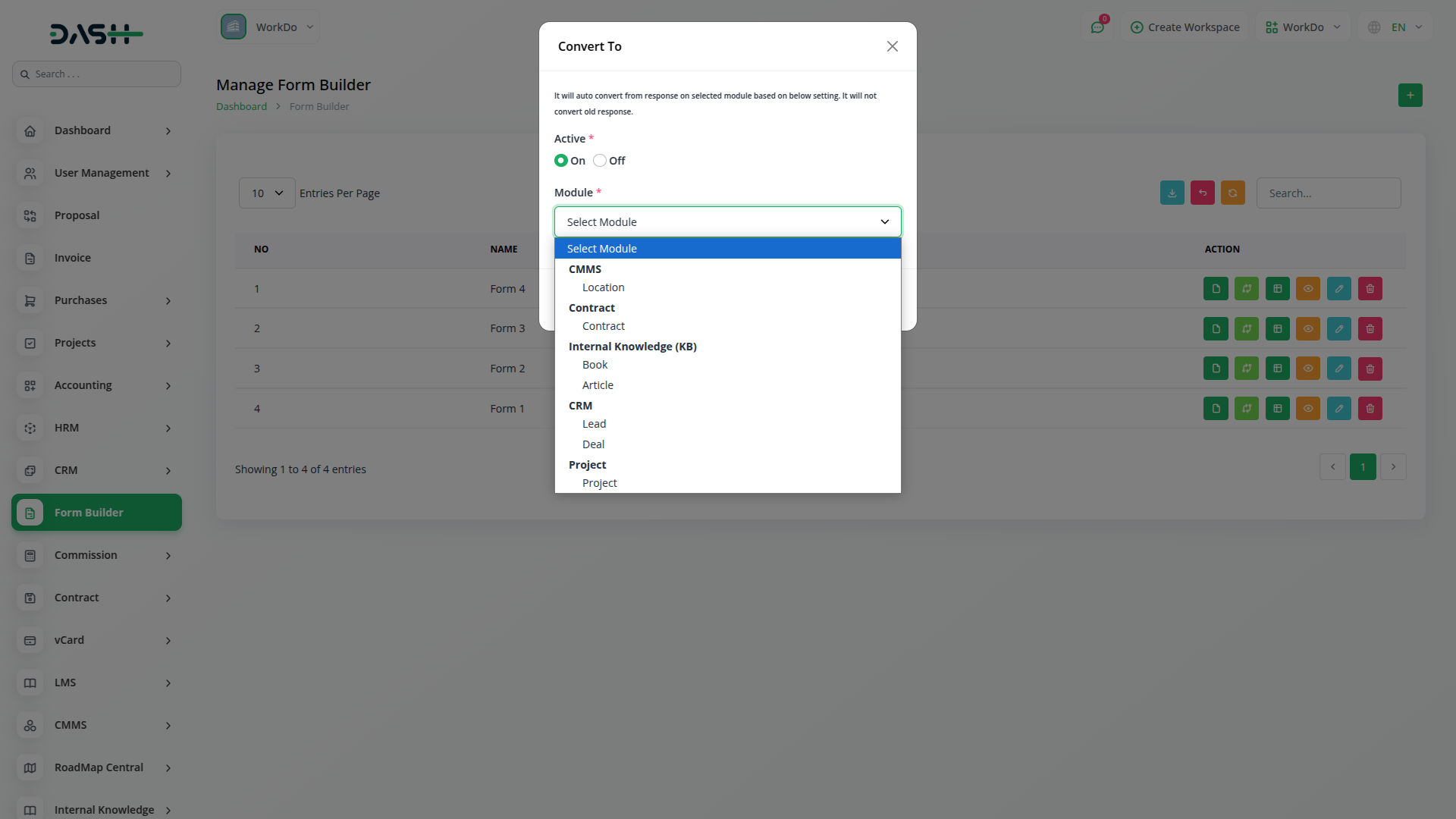Within our platforms Actions section, youll find a range of functionalities tailored to streamline your workflow. Here, you can effortlessly copy the form link, access form field editing or viewing options, review responses, and seamlessly convert forms into leads or CRM entries. When transforming a form into a lead, all details are seamlessly transferred to the lead column. Conversely, converting it into CRM enables convenient form filling directly from the frontend. Additionally, you retain the flexibility to edit the form name to suit your preferences.