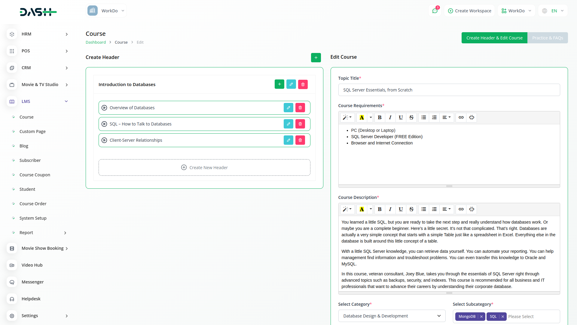 Easily organize all your courses by dividing them into distinct course categories. Easily manage all the courses in your store. Keep your inventories in a single tab and manage every aspect of your courses. View course details like names, prices, categories, qualities etc.