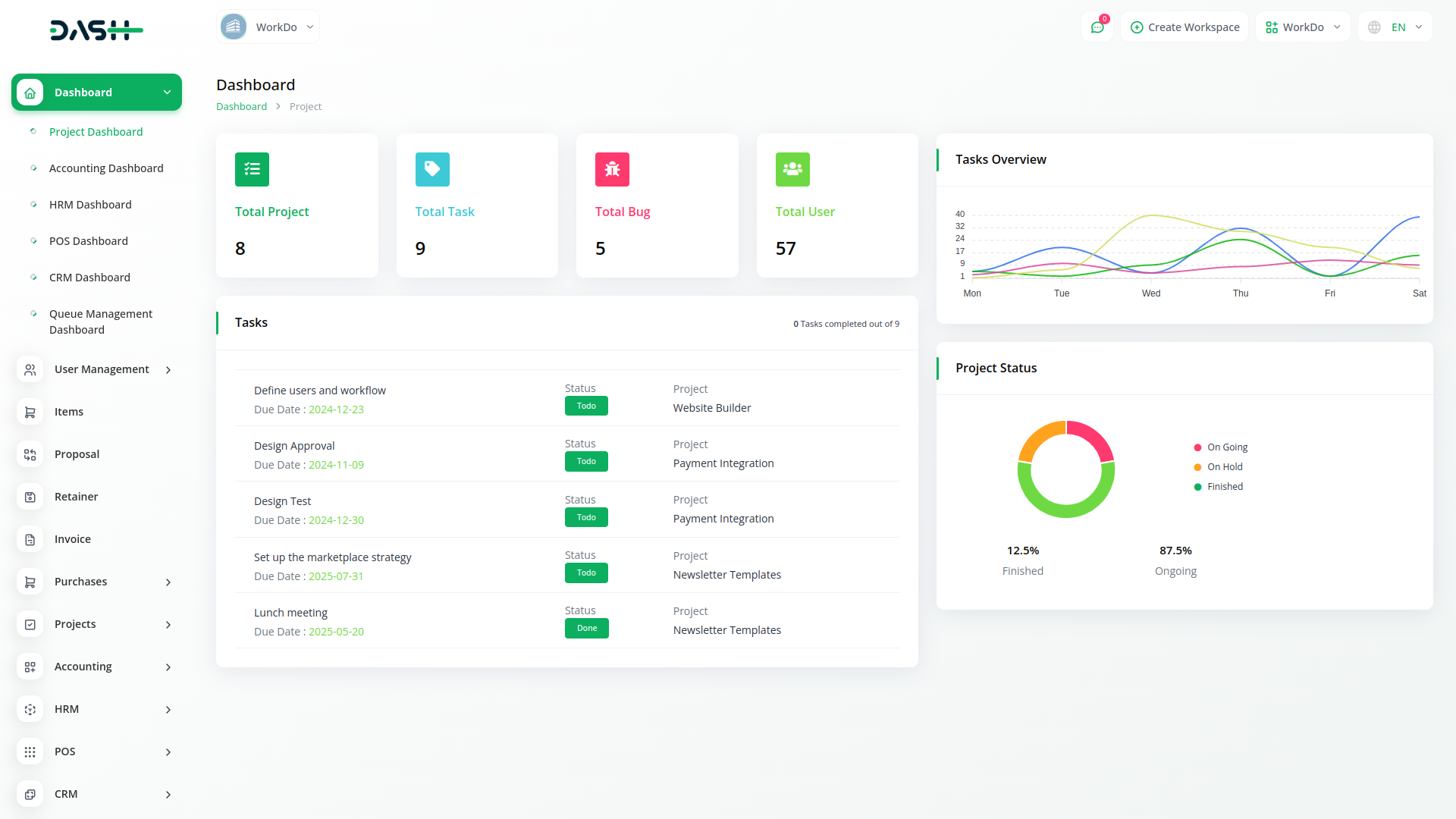Com o Dash, você pode gerenciar todas as suas funções de negócios de forma conveniente em um único local.