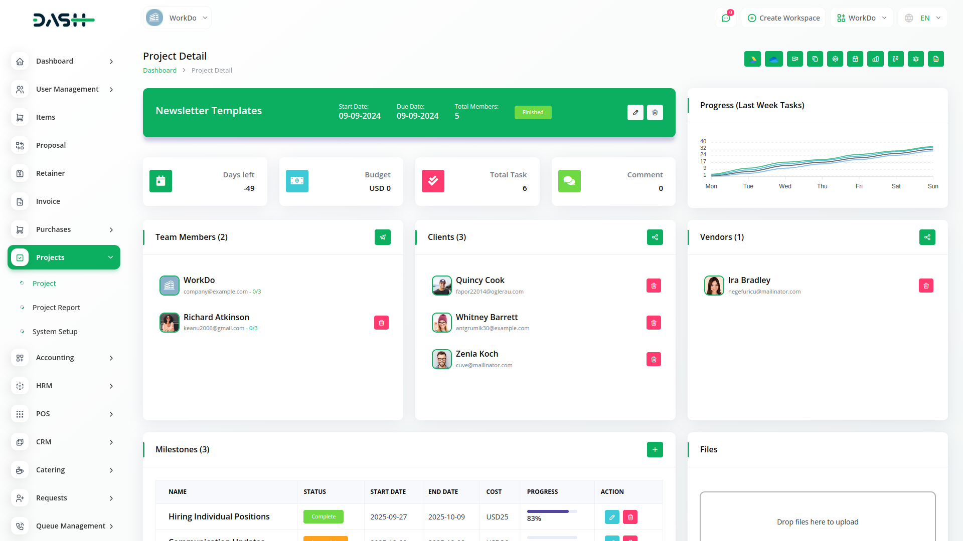 Adicionar uma nova tarefa a um projeto já existente e priorizá-las de acordo com a necessidade de urgência. Atribuir a tarefa aos membros da equipe e definir uma data de vencimento para a conclusão da tarefa. Adicionar comentários à tarefa e criar uma sub-tarefa para facilitar a conclusão. Anexar arquivos necessários em uma tarefa necessária.